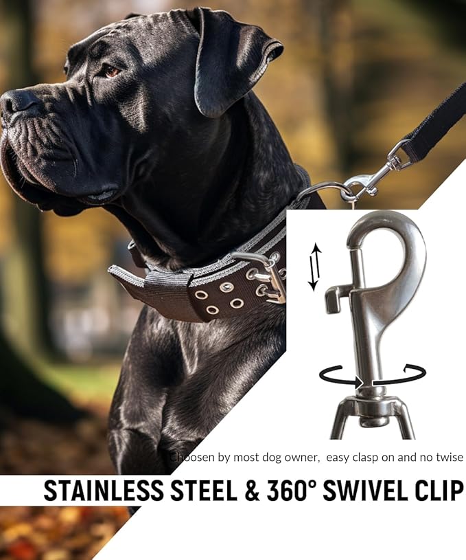 - ALL ROUND USE - Making this new range perfect for almost all activities such as: Dog Training, Patrol, Hiking, Jogging, Hunting, Camping, Working, Running, Traveling, Camping & many more activities! Includes breeds like Great Danes, Mastiffs, Doberman pinschers, Rottweilers, German shepherd and others of similar size. Having extra cushioning and evenly distributing pressure on their throats helps prevent damage
