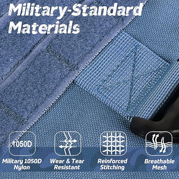 - Military-standard Material: Heavy duty vest made of 1050D Nylon with sturdy stitching for extra durability and wearability, suitable for all field use. Two Metal Shoulder Buckles can bear great pulling force, ensuring your dog is safely harnessed during training, hunting, working, and any other occasion. Well padded in every pressure load point to protect your dog, while the breathable air mesh keeps your dog ventilated and comfortable