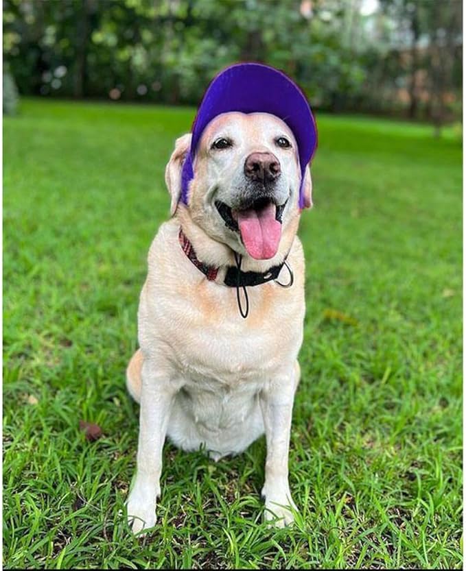 - The Royal Blue baseball cap has a front visor designed to wrap around the dog's forehead.