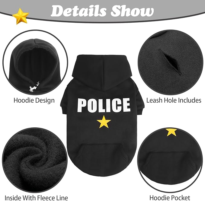 BINGPET Police Dog Hoodies Puppy Sweater Cold Weather Dog Coats Soft Brushed Fleece Pet Clothes Hooded Sweatshirt for Dog Cat