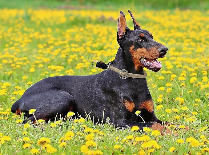 Braided Round Martingale Dog Collar, Training Collar with Slidable Stop Ring - Ideal for Large Dogs (L(1/2") - 22" Long, Khaki)