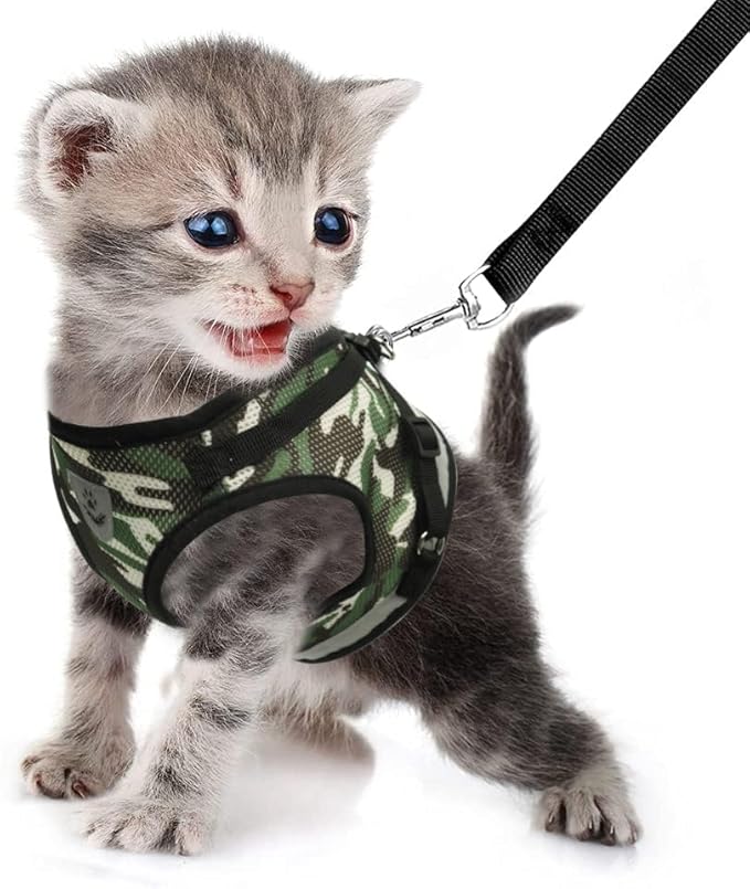 FEimaX Dog Harness and Leash Set for Walking, Soft Mesh Adjustable Easy Control Lightweight Cat Vest Harnesses with Reflective Strips, Escape Proof Small Dogs Cats Vests