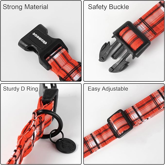 DOGWONG Cotton Dog Collar, Heavy-Duty Fall Dog Collar Durable Soft Fabric Pet Dog Collars Cute Halloween Puppy Necklace for Small Medium Large Dogs