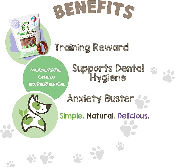 - RAWHIDE-FREE CHEWS - Nature Gnaws Bison Trachea Chews are low-odor, grain-free and gluten-free, making them the perfect alternative to rawhide chews and manufactured dental bones.