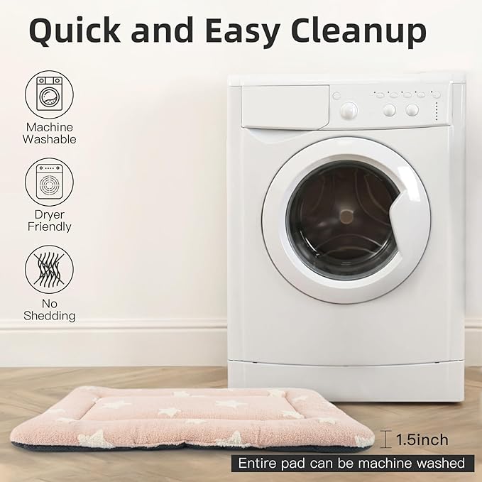 Mora Pets Cat Bed for Indoor Cats Washable Dog Crate Pad Cute Star Dog Bed Mat for Small Dogs Pet Kennel Pad for Cage Soft Flat Puppy Kitten Cushion Sleeping Anti-Slip Pink 22 x 13