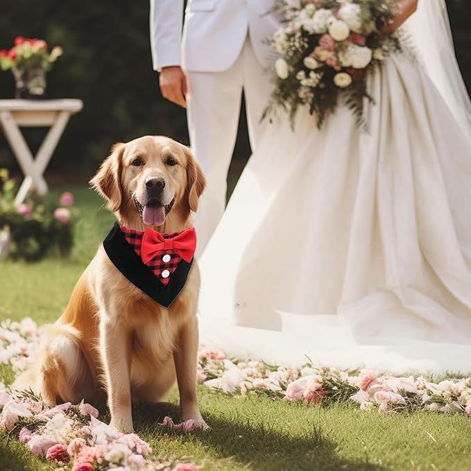 - VALUE PACK: Black classic and buffalo plaid style dog wedding bandana costume, perfect costumes for different occassions, making them formal and handsome.