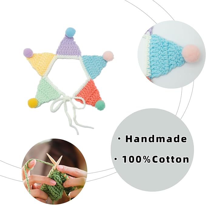 Knitted Dog Costume,Handmade Cat Birthday Costume,Dog Outfit and Birthday Decoration,Cute Cat Outfit,Rainbow Bandana,Adjustable Clown Costume