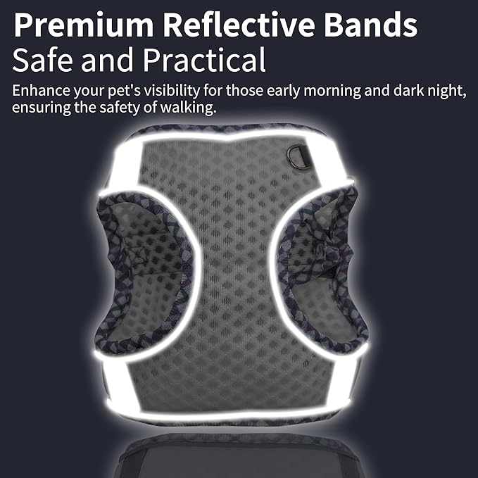 - REFLECTIVE ADJUSTABLE TINY DOG HARNESS - Puppy harness and leash set is designed with premium reflective strips and four reflective bands on the sides, this harness can be seen even in low visibility conditions or dark night, making it easier to control dogs and ensuring the safety of walking at night.