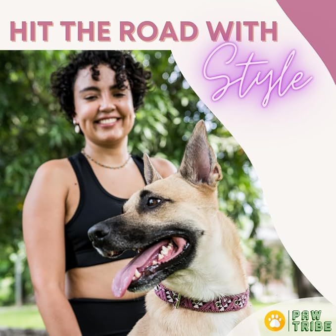 Western Dog Collar - Leather Embroidered Design for Small Medium Large Dogs & Puppy Pets - Aztec Southwest for Boy Girl Female & Male Dogs - Collar para Perros Beaded (Large, Carissma)