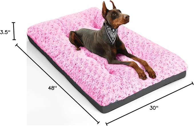 POCBLUE Deluxe Washable XXL Dog Bed Dog Crate Mat 48 inch Comfy Fluffy Kennel Pad Anti-Slip for Dogs Up to 110 lbs, 48" x 30", Pink
