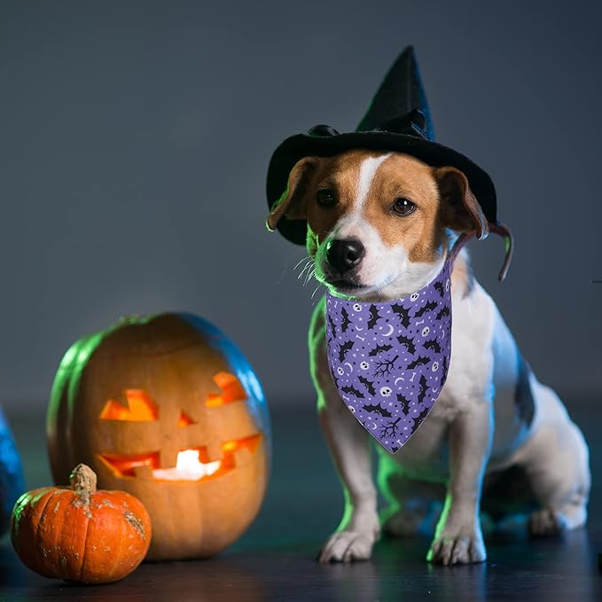 - Halloween Dog Bandanas: Designed with bat and spider pattern, purple color, It’s born for halloween. Let your furry friends look more fashionable and attractive on halloween.