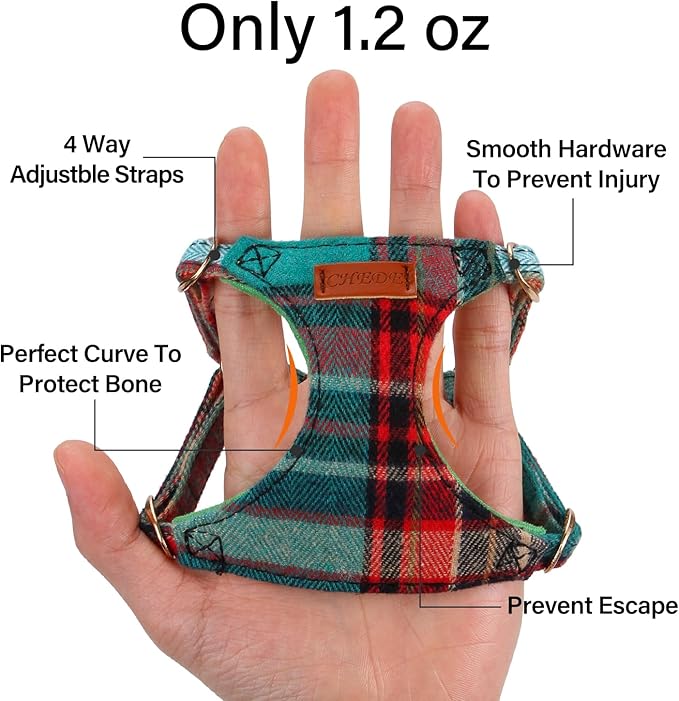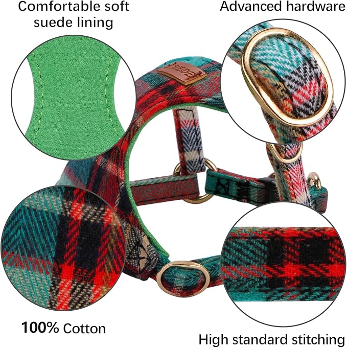 CHEDE No Pull Puppy Harness and Multifunction Dog Leash Set- 8 Colors Soft Adjustable No Choke Escape Proof Cute,Lightweight Pet Vest Harness for Small and Medium Dog (XS, Green Grid)