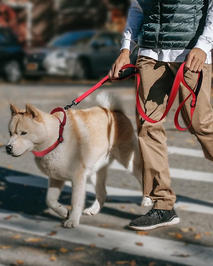 - DUAL HANDLES SOFT PADDED: Soft Neoprene and padded handle, Utilize the standard handle for casual walks and loose leash walking; The traffic handle near your dog's collar guides your pup through crowded areas with ease