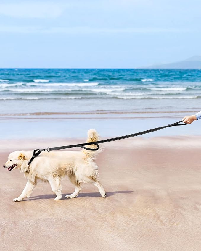 - DUAL HANDLES SOFT PADDED: Soft Neoprene and padded handle, Utilize the standard handle for casual walks and loose leash walking; The traffic handle near your dog's collar guides your pup through crowded areas with ease