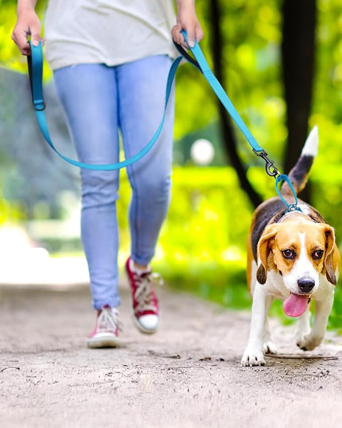- DUAL HANDLES SOFT PADDED: Soft Neoprene and padded handle, Utilize the standard handle for casual walks and loose leash walking; The traffic handle near your dog's collar guides your pup through crowded areas with ease