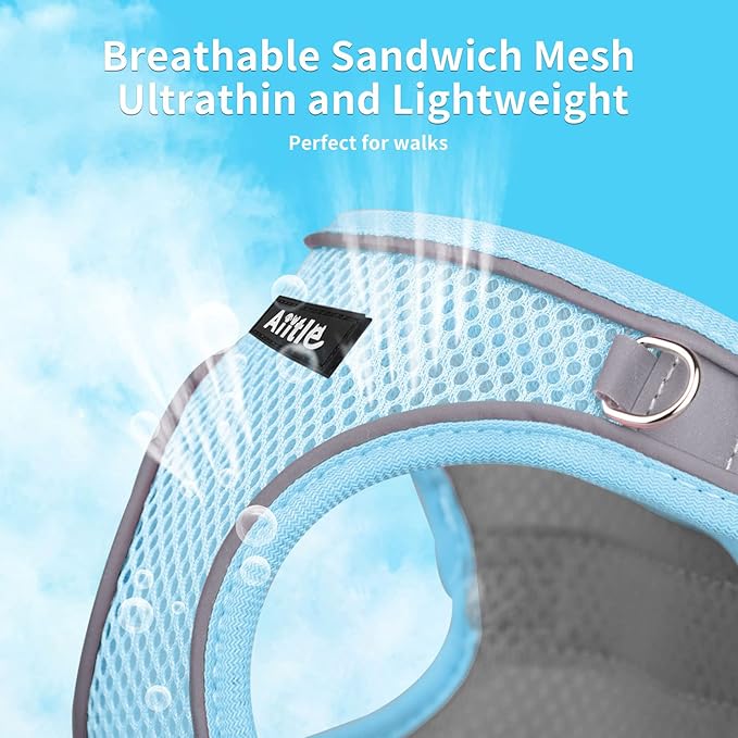 - Ultra Breathable: The step-in dog harness is made with super breathable sandwich air mesh, which is ultrathin, cooler, soft and more comfortable. The surface of sandwich mesh fabric is covered with holes, which can keep your dog dry in daily walking. So our small puppy harness is perfect for walks in any season, such as the upcoming spring, give pets an extraordinary wearing experience. Now you can have a happy walking with your pet dog!