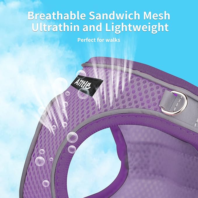 AIITLE Small Harness for Puppy with A Leash - Spring Dog Vest Harness with Super Breathable Mesh, Reflective No-Pull Pet Harness for Outdoor Walking, Camping for Small Dogs, Cats Pure Purple XXS
