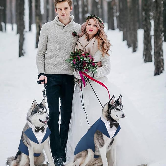 - Two Piece Set: Formal Dog Tuxedo and Dog Wedding Bandana Set, can be used seprately. Bandana for comfortable wear featuring neck or bow tie along with decorative buttons to show off your best friend's personality