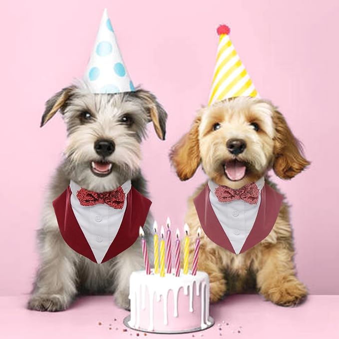 - Two Piece Set: Formal Dog Tuxedo and Dog Wedding Bandana Set, can be used seprately. Bandana for comfortable wear featuring neck or bow tie along with decorative buttons to show off your best friend's personality