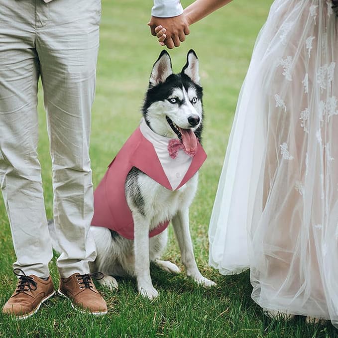 - Two Piece Set: Formal Dog Tuxedo and Dog Wedding Bandana Set, can be used seprately. Bandana for comfortable wear featuring neck or bow tie along with decorative buttons to show off your best friend's personality