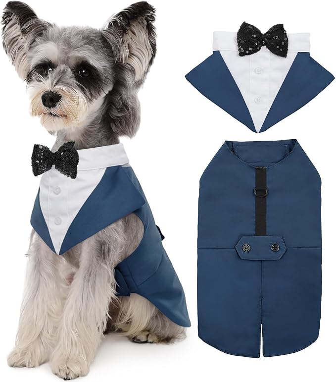 - Two Piece Set: Formal Dog Tuxedo and Dog Wedding Bandana Set, can be used seprately. Bandana for comfortable wear featuring neck or bow tie along with decorative buttons to show off your best friend's personality