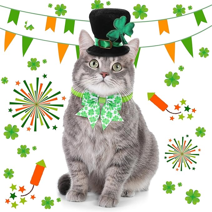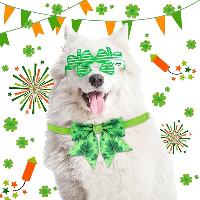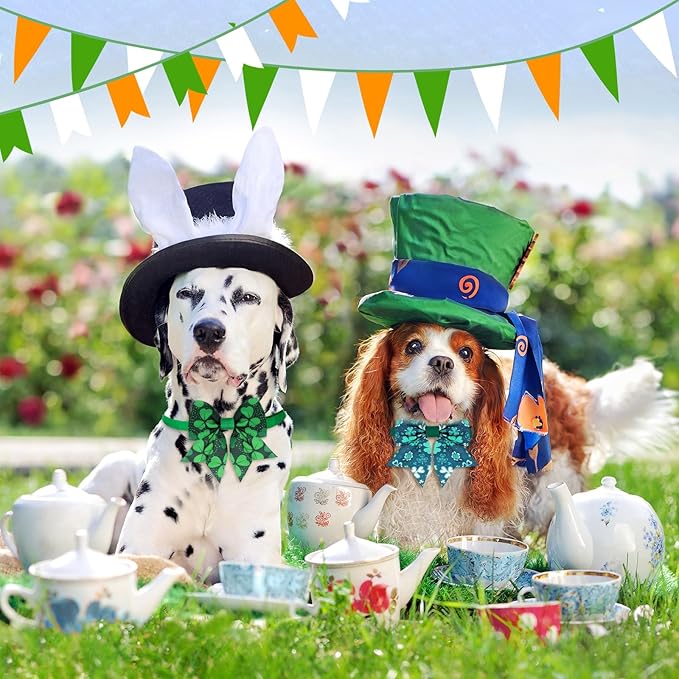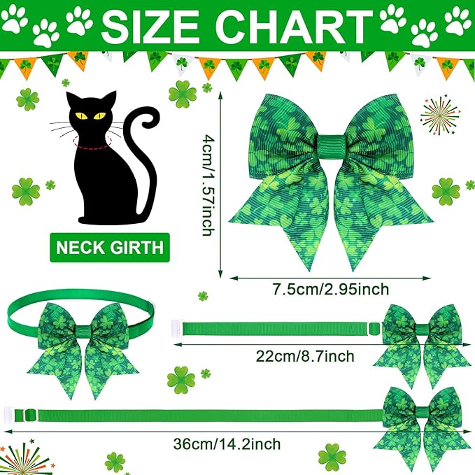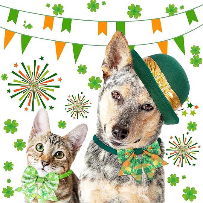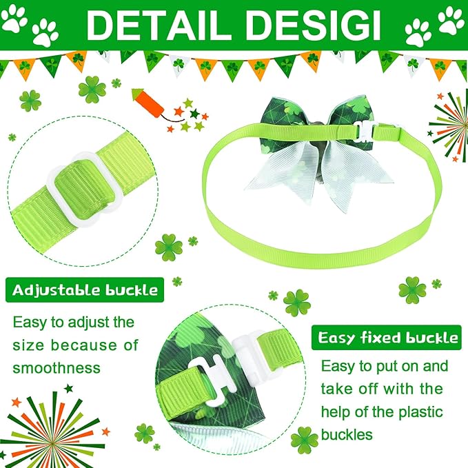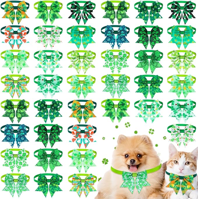 Maitys 40 Pcs St. Patrick's Day Cat & Dog Bow Ties - Adjustable Clover Pattern Neckties for Festival & Party Grooming Accessories