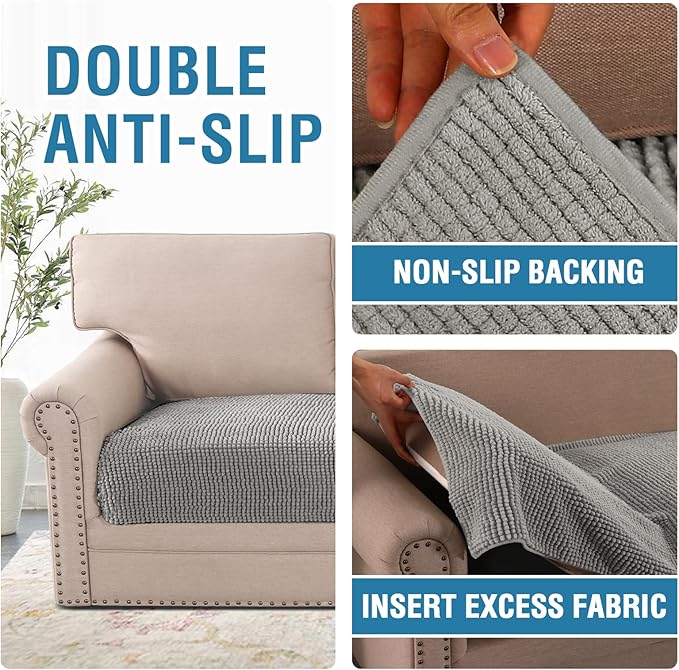H.VERSAILTEX Plush Chenille Dog Bed Cover Thick Soft Sofa Cover for 3 Cushion Couch Anti Slip Couch Cover Furniture Protector for Dog, Pet, Cat (35" x 82", Dove)