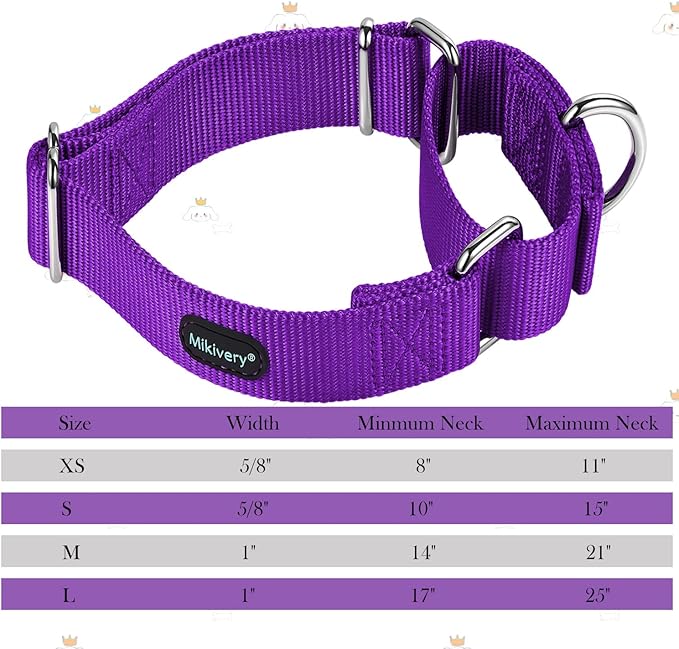 Mikivery Martingale Dog Collar Nylon Adjustable and Safety Training Purple Comfortable Metal Buckle Pet Collars for Small Medium and Large Dogs