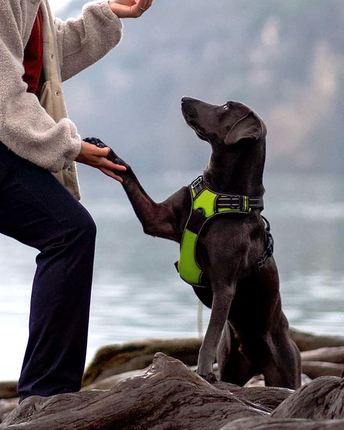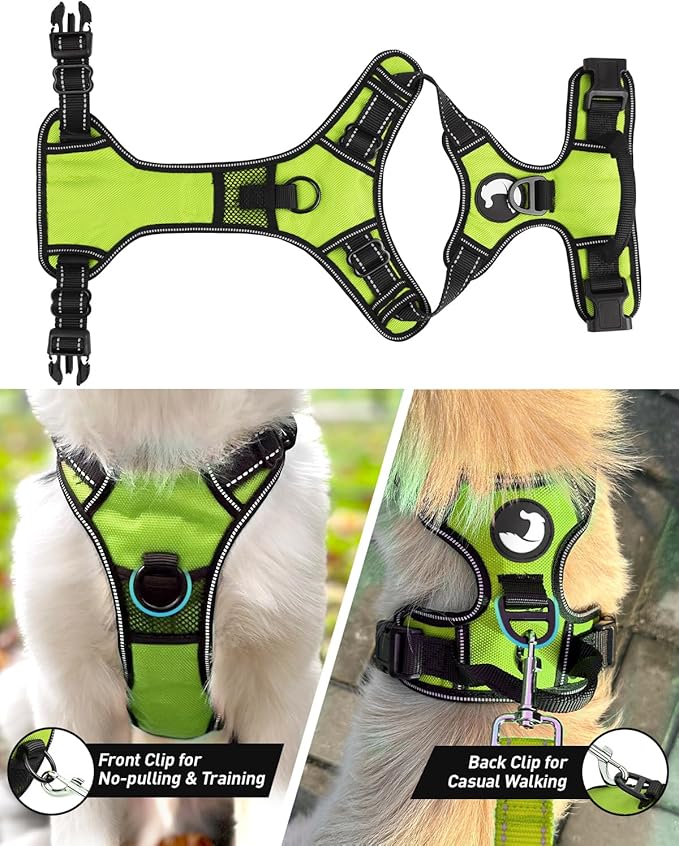 Joytale No Pull Dog Harness Medium Sized Dog, Reflective Pet Vest with Front Clip, Adjustable Soft Padded Harnesses with Easy Control Handle for Training and Walking, Green, M