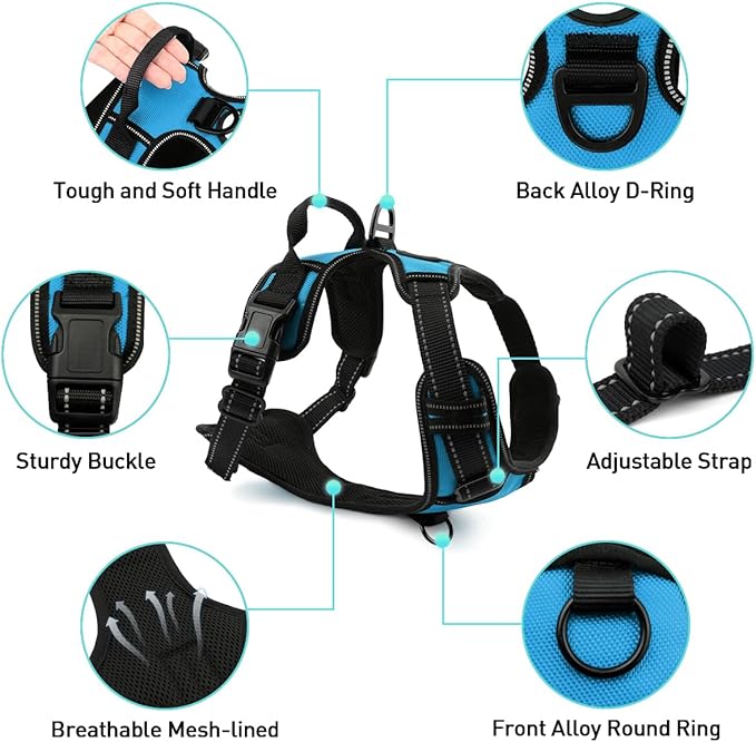 Joytale No Pull Dog Harness Medium Sized Dog, Reflective Pet Vest with Front Clip, Adjustable Soft Padded Harnesses with Easy Control Handle for Training and Walking, Sky Blue, M