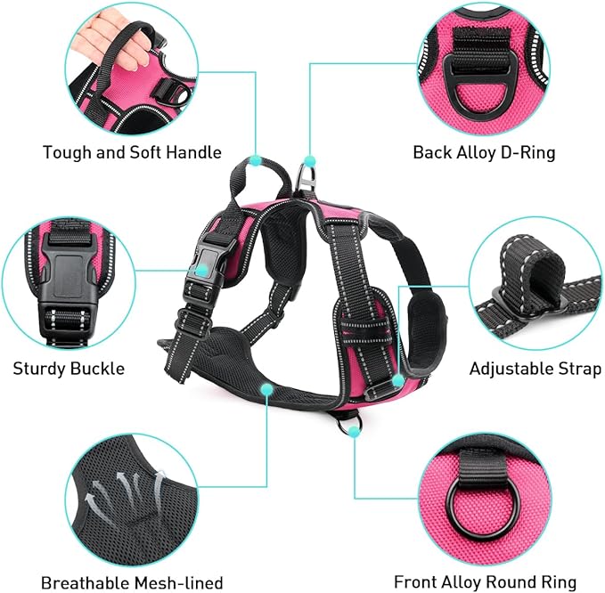 Joytale No Pull Dog Harness for Small Dogs, Reflective Pet Vest with Front Clip, Adjustable Soft Padded Harnesses with Easy Control Handle for Training and Walking, Hot Pink, S