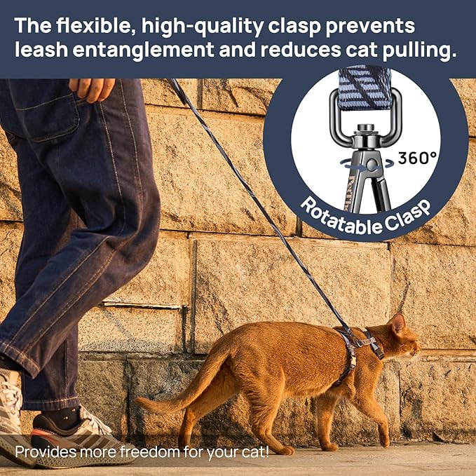 - Escape Proof Cat Harness: This cat harness wraps securely around the neck and chest preventing any chance of escape. The simple design takes the strain off your cat's neck and back, even them won't notice wearing it. Walk easily and say goodbye to escaped kittens