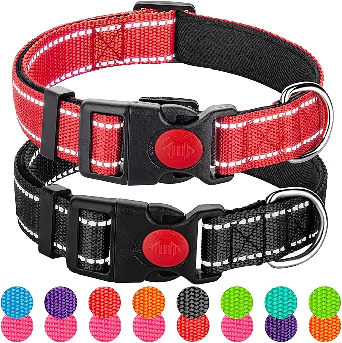2 Pack Reflective Dog Collars for Medium Large and Small Breed Dogs Male Female,Padded Soft Durable Nylon Neoprene Collar for Puppy Dogs Girl Boy with Quick Release Safety Buckle,Red Black,L