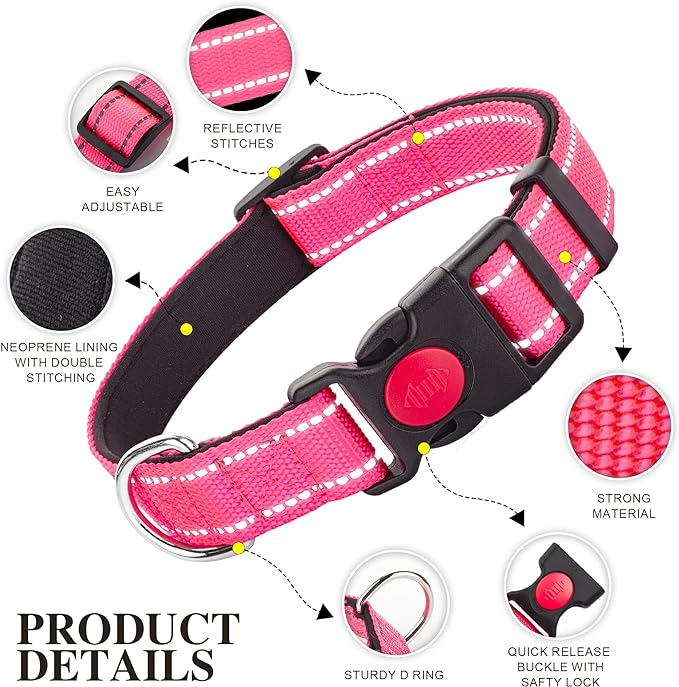 - Safty Buckle Our reflective dog collars are high-quality, quick-release safety buckles for effortless length adjustment and easy on/off. Our buckle dog collar provides a comfortable fit and One-touch locking to prevent breaking free of the basic dog collar.