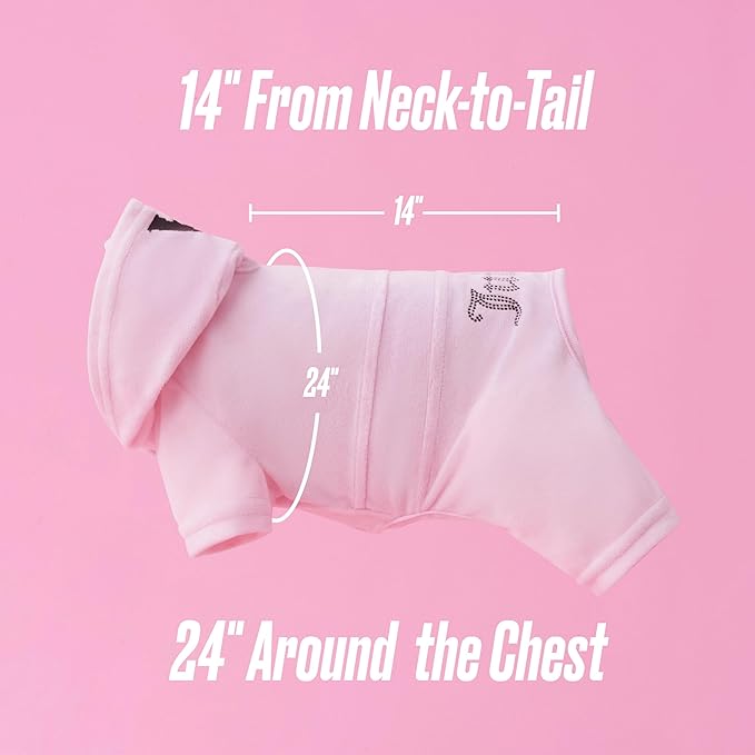 Juicy Couture Hooded Pet Juicy Bling Velour Tracksuit Chest 24 inches for Small Dogs and Cats - Pink - M/L
