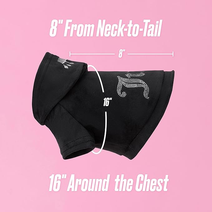 Juicy Couture Bling Velour Pet Hoodie - Black - XS/S (2-7 lbs.) - Pet Hoodies for Small Dogs or Cats