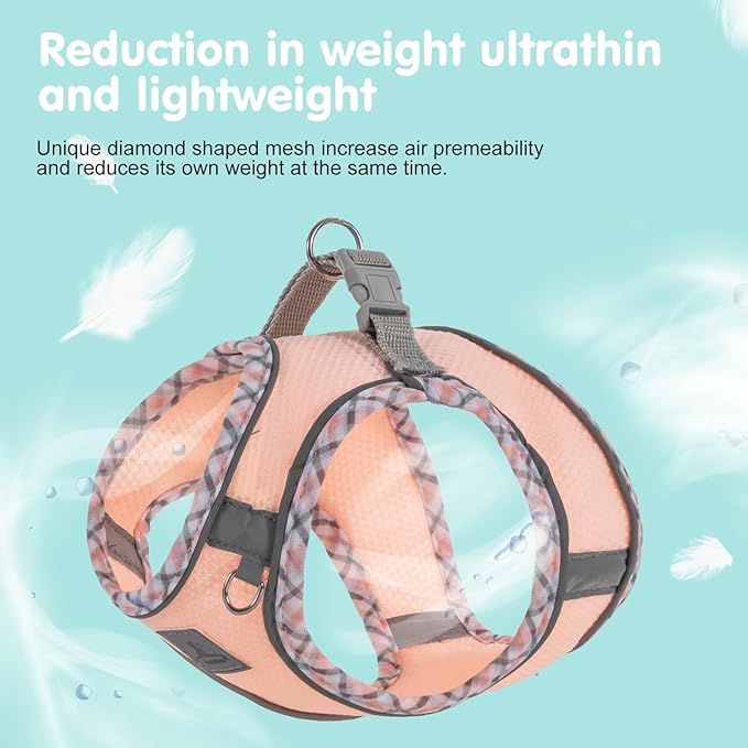- Light & Breathale; The dog harness is made with jacquard fabric, which is high-density, breathable, three-dimensional, soft and comfortable, and can prevent chewing or tearing. It has extremely high durability, tensile resistance, tear resistance and fusion resistance. It has the characteristics of moisture absorption and perspiration, creating dryness, giving pets an extraordinary wearing experience.