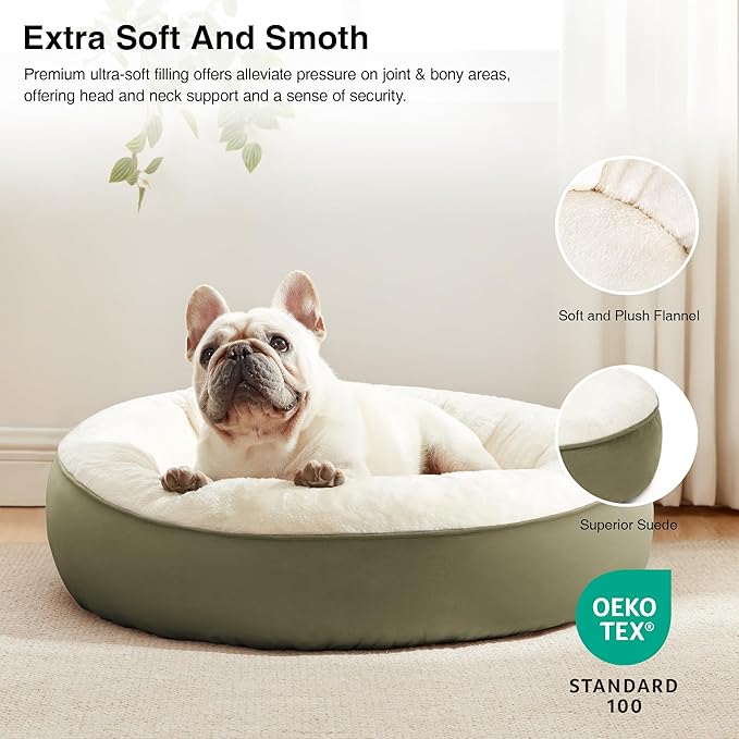 Love's cabin Round Donut Cat and Dog Cushion Bed, 25in Pet Bed for Small or Medium Dogs, Anti-Slip & Water-Resistant Bottom, Soft Durable Fabric Pet Beds, Washable Calming Cat & Dog Bed Olive Green