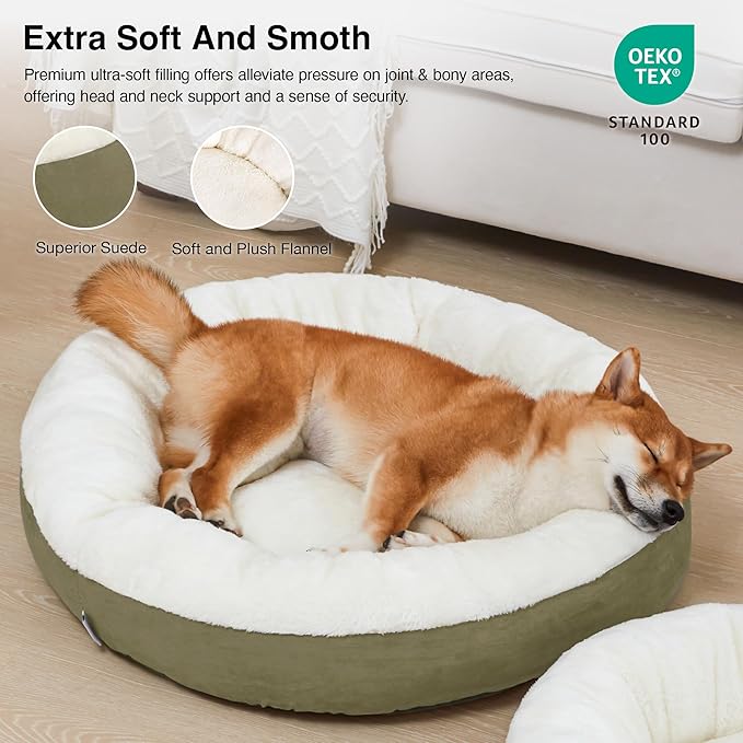 Love's cabin Round Donut Cat and Dog Cushion Bed, 30in Pet Bed for Medium or Large Dogs, Anti-Slip & Water-Resistant Bottom, Soft Durable Fabric Pet beds, Washable Calming Cat & Dog Bed Olive Green