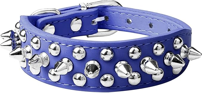 Spiked Dog Collar Soft Pu Leather Mushrooms Rivet Spike Studded Puppy Adjustable Pet Collars for Small Breeds (L, Dark Blue)