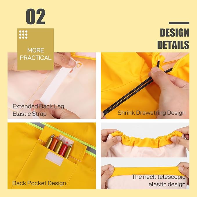 - Easy to Wear and Clean:Patyelf raincoat comes with fixing straps on the chest and belly, making it easy to put on and take off. The hat is designed with strings, and the lightweight fabric makes it easy to clean and store.