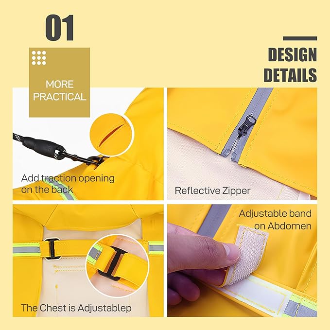 - Stay Visible and Safe:Patyelf raincoat features super bright reflective strips on the back, hood, and bags, ensuring visibility and safety for your dog at night. You can easily spot your dog when walking in low light conditions.