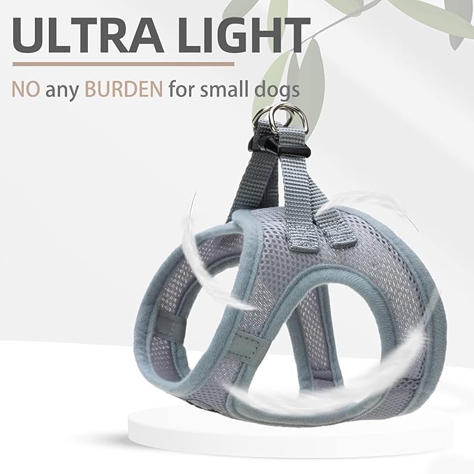 - [COMFORTABLE MATERIAL, DAILY WALKING, FOUR SEASONS WEARING] - The harness is made of durable polyester, and it's adopted with an air-mesh design. The whole harness is very soft, lightweight, and breathable. Even if your dog wears it all day, he won't feel any discomfort. For daily walking or running, it is a very easy thing to do. Besides, this is a four seasons harness, it keeps the dog cool on hot days and keeps the dog warm on cold days.