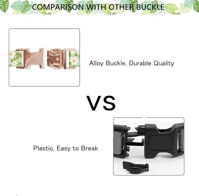 Metal Buckle Dog Collar, Durable Adjustable Dog Collar Soft for Small Medium Large Dogs (003-Green Flower, S(10-14in)