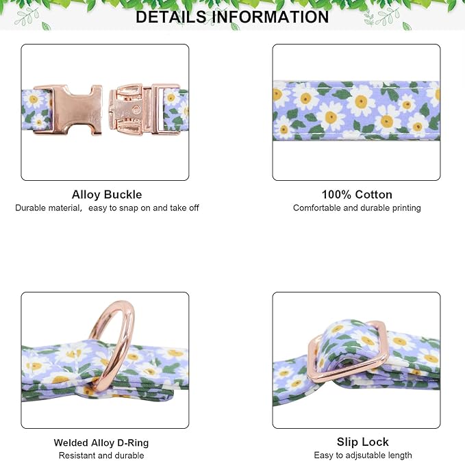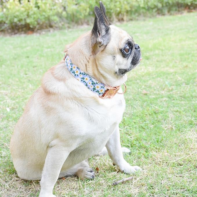 Metal Buckle Dog Collar, Durable Adjustable Dog Collar Soft for Small Medium Large Dogs (002-Purple Flower, L(15-23in)