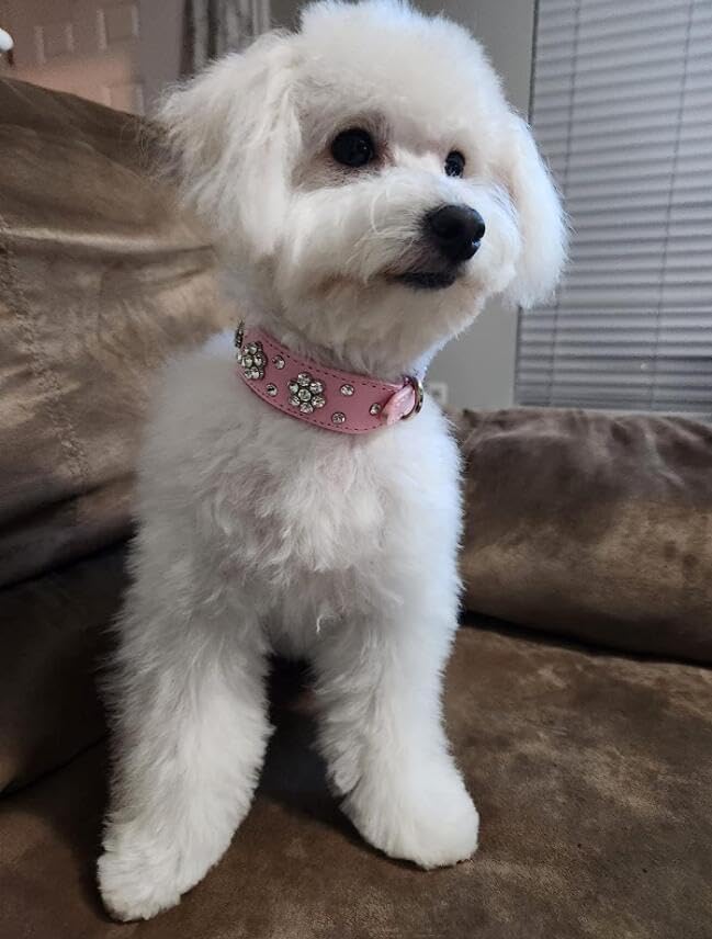 Cute Flower Rhinestone Dog Collar, Bling Collar PU Leather Adjustable Sizes Small Medium Large (M, Hot Pink)