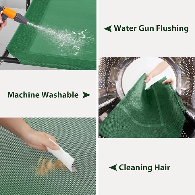 - Portable Cooling Dog Bed: This raised dog bed is easy to assemble and disassemble, ideal as an outdoor dog bed or an indoor raised dog bed. This cooling dog bed is easy to clean. Wash the mesh with tap water, a hose, or a damp towel. For deeper cleaning, use a mild soap or natural all surface cleaner and rinse thoroughly.