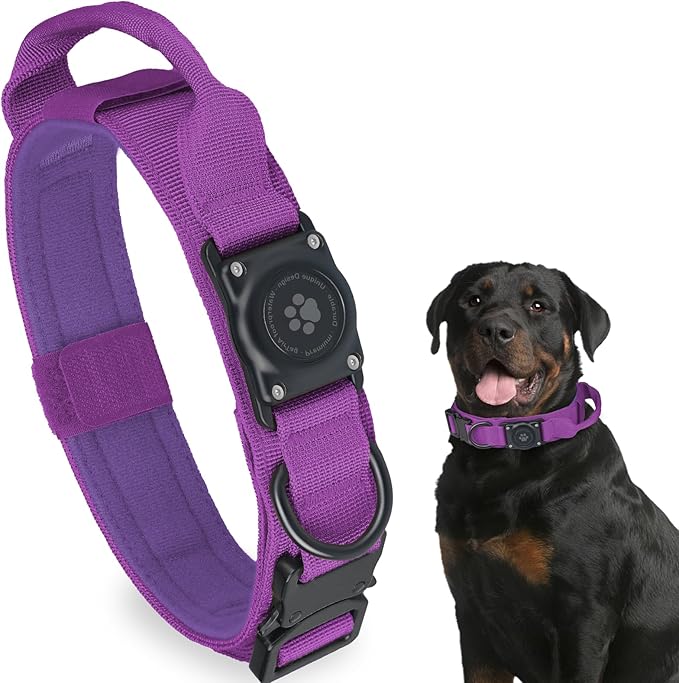 - 【Premium Material】-- Tactical airtag dog collar is made of 1000D premium quality nylon fabric and strong metal buckle, very durable and wear-resistant. Soft, breathable and comfortable padded inner won't hurt dog's fur and can protect dog's neck well.