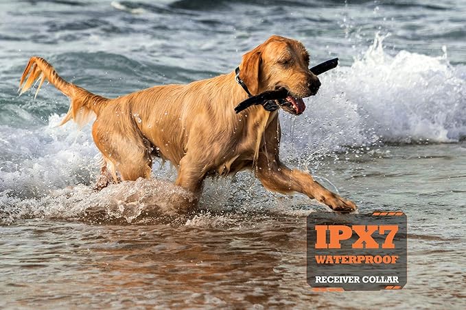 - 3/4 mile range, IPX7 waterproof. Training indoors and outdoors easily and freely, even for hunting with close-working dogs, without worrying about malfunction in water.