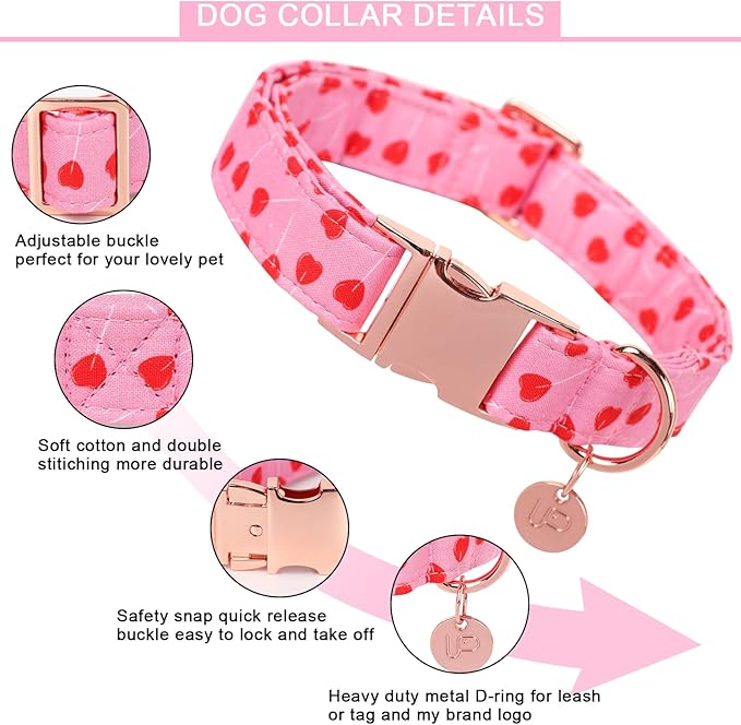 Valentine's Dog Collar, Pink Heart Pattern, Adjustable Size (10-16 inches), Premium Cotton, Sturdy Metal Buckle, Perfect for Small, Medium, Large Dogs & Cats, Valentine's Day Theme